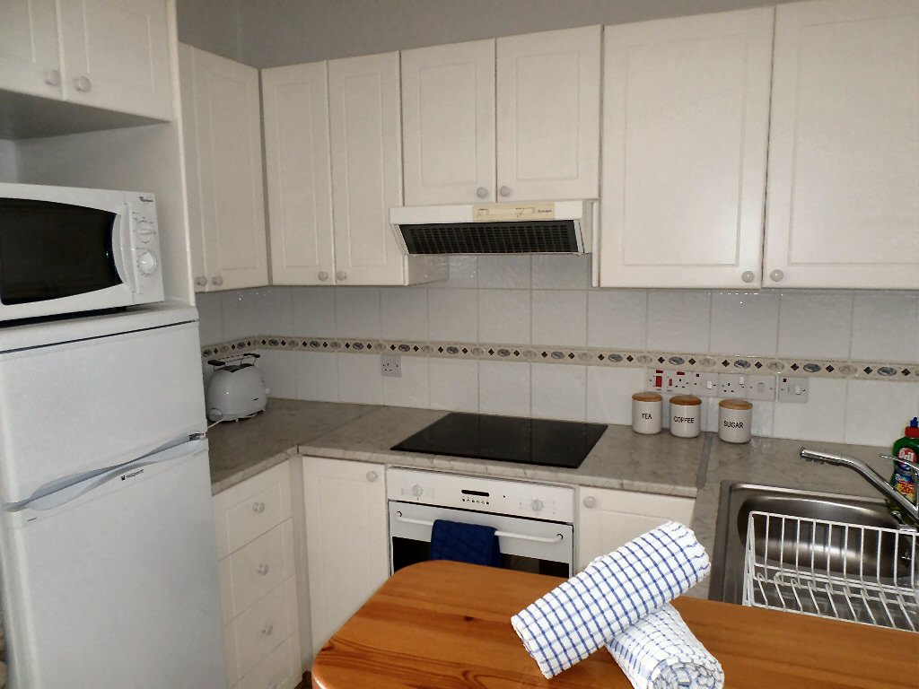 Kitchen - Washing machine, fridge/freezer, microwave, oven, hob, grill, toaster and kettle.