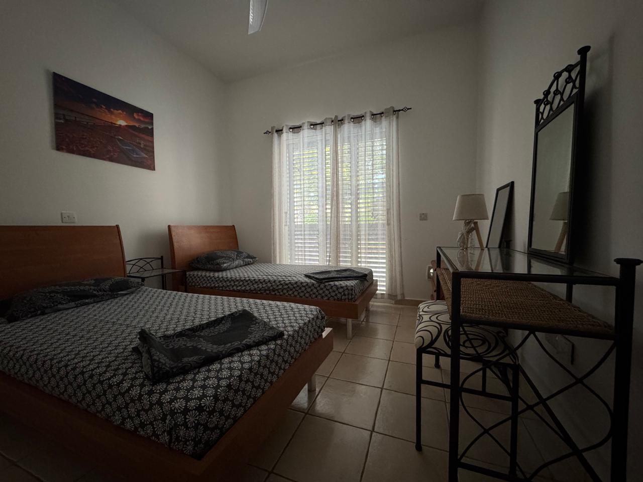 Bedroom 2 - Twin, air-conditioned, ceiling fan, fitted wardrobes. Patio doors lead onto the terrace.
